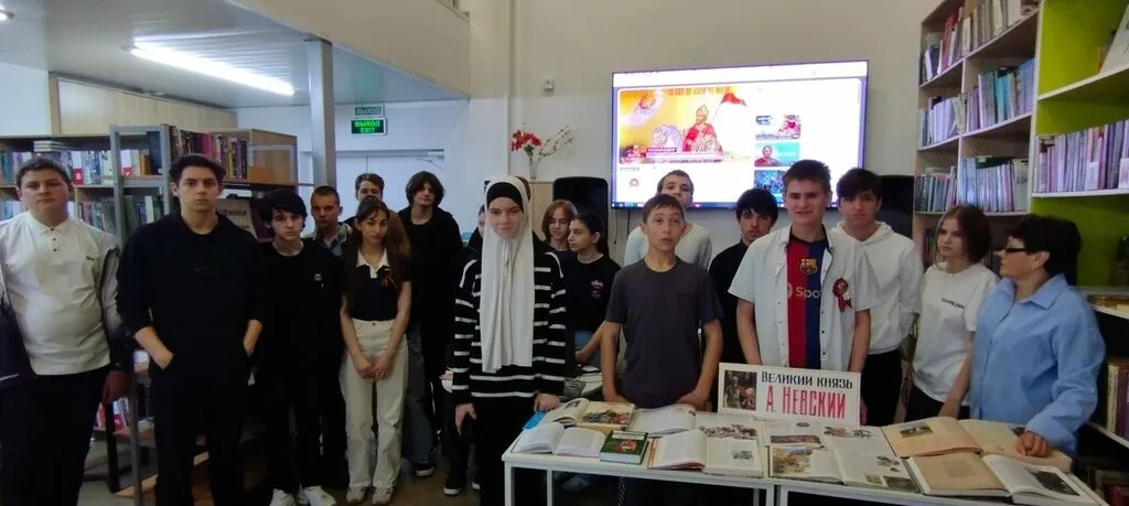 16 апреля в Майской модельной библиотеке № 13 прошла историческая хроника «А. Невский: подвиги за веру и Отечество». Мероприятие посетили ученики 8 «а» класса вместе с педагогом-организатором И.В. Абдуназаровой.